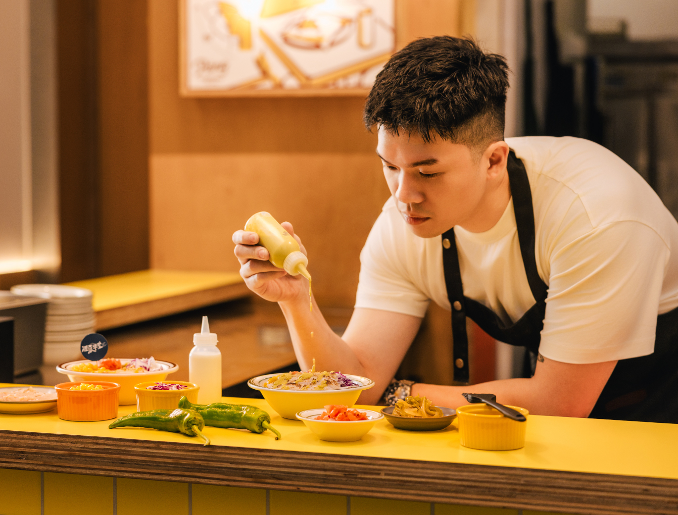他將律政背景的嚴謹邏輯,轉化為對風味結構的精確掌握。歷經北歐柴燒餐廳 nkụ 與拉丁美洲米其林一星餐廳 ZEA 的扎實洗禮,主廚建立起對味蕾節奏的細膩感官。