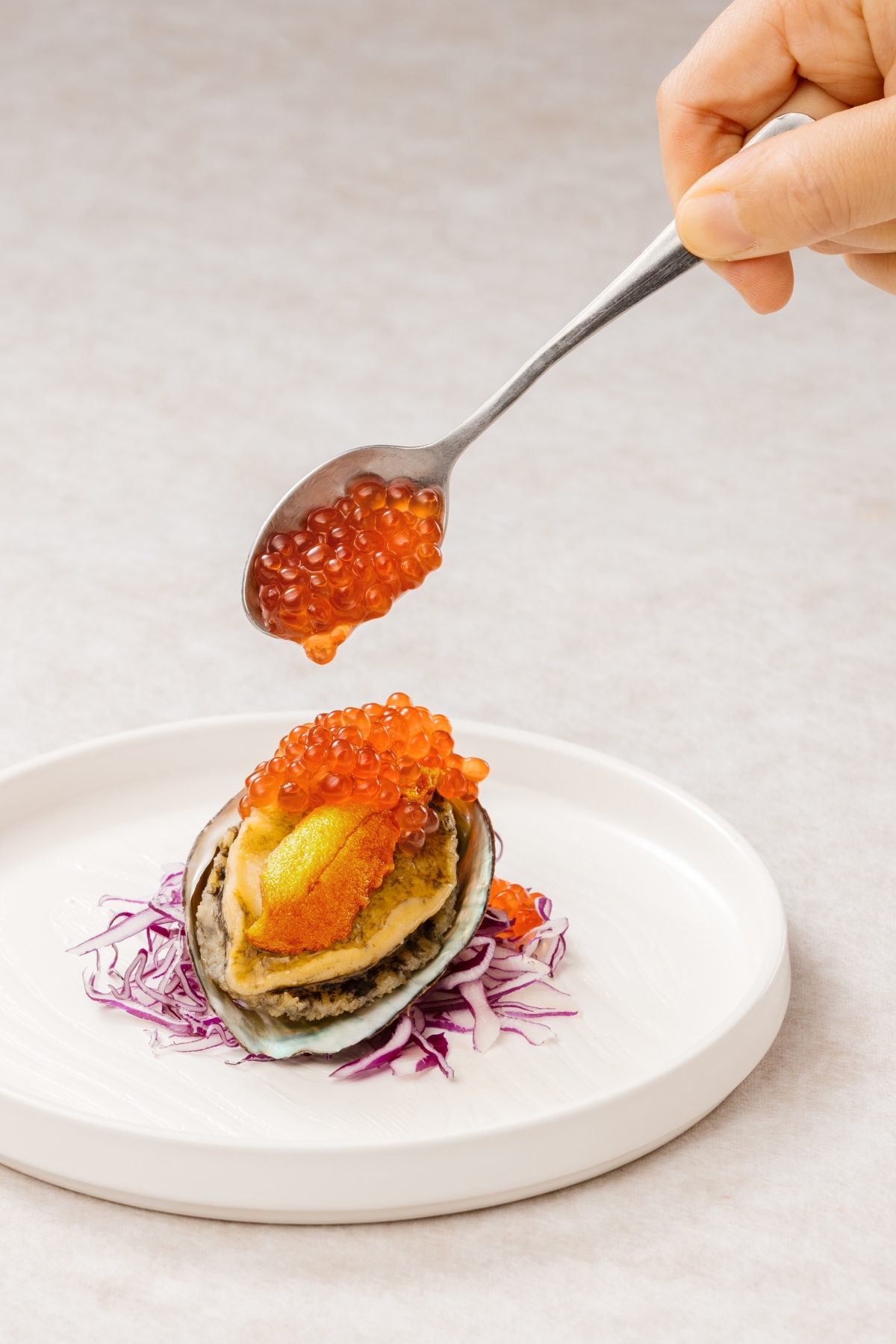 後以剔透飽滿的鮭魚卵細緻點綴