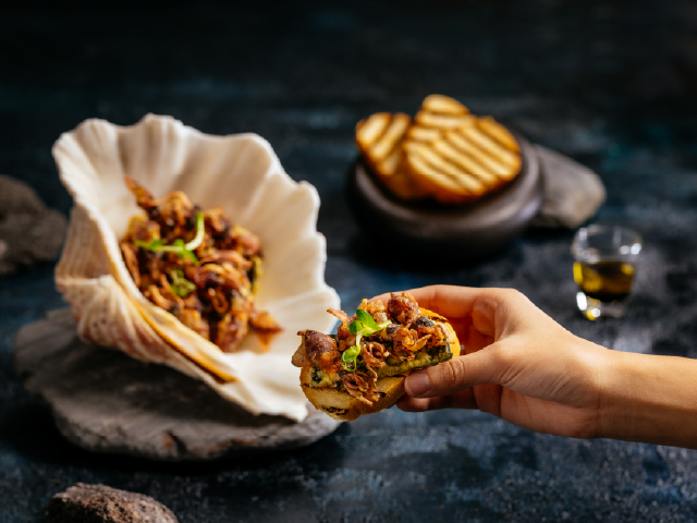 以西班牙料理Tapas為靈感,取擁有「深海中藍寶石」美譽的螢烏賊裹粉輕炸,口感酥嫩,酸香經典油醋醬映襯鮮美海味,巧搭酥脆有嚼勁的法棍,體驗從日本沿岸到歐風小館的跨國界美味旅程。