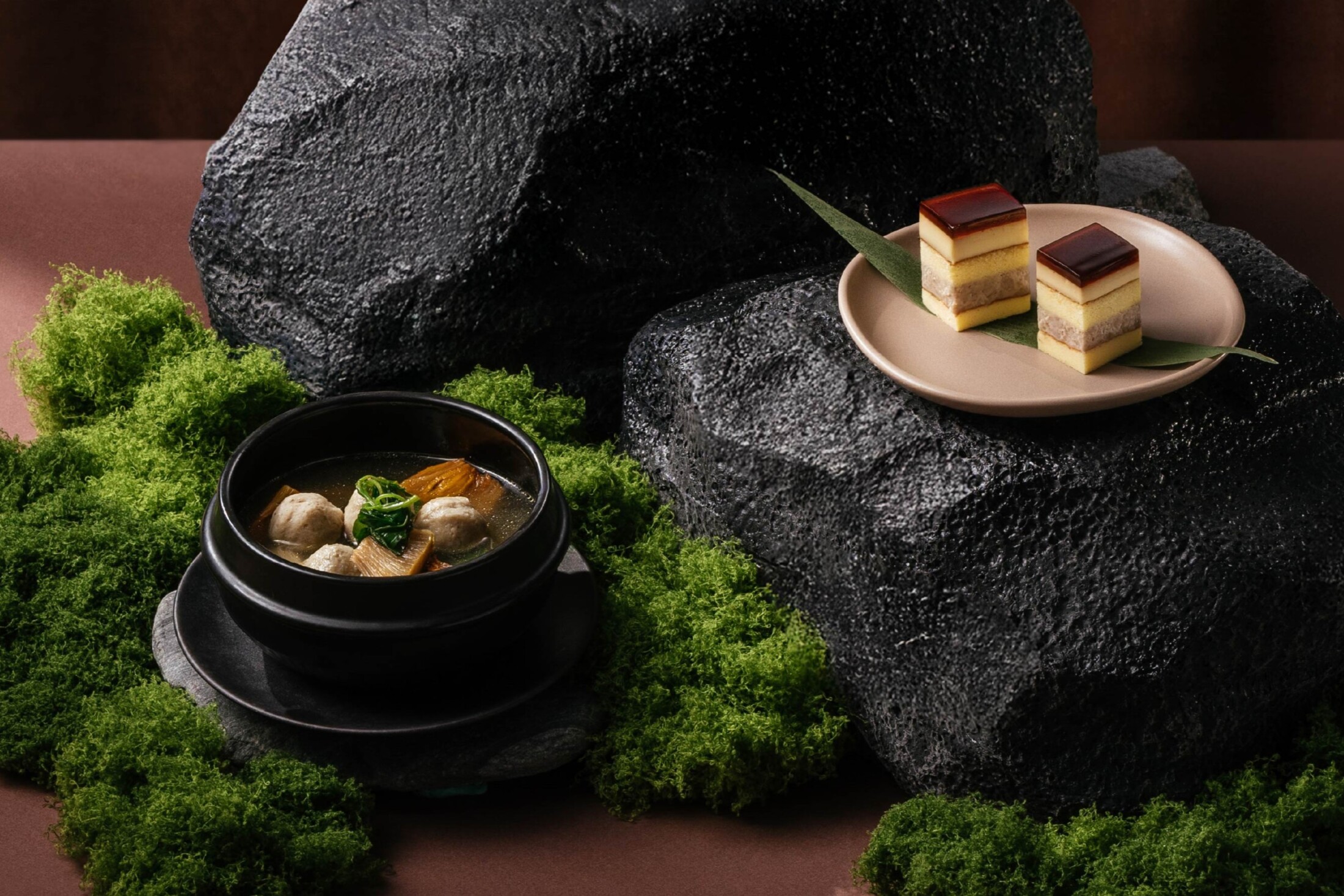 選用花東盛夏的麵包果「巴吉魯」,鬆軟果肉帶出溫潤自然甜味,搭配花蓮林記手工魚丸,以新鮮鬼頭刀製作,口感Q彈鮮香。加入野菜、蒜頭與蝦米、小魚乾慢火熬煮,湯頭清亮而富有層次,甜與鹹交織出貼近土地的清雅風味,溫潤順口、餘韻悠長。