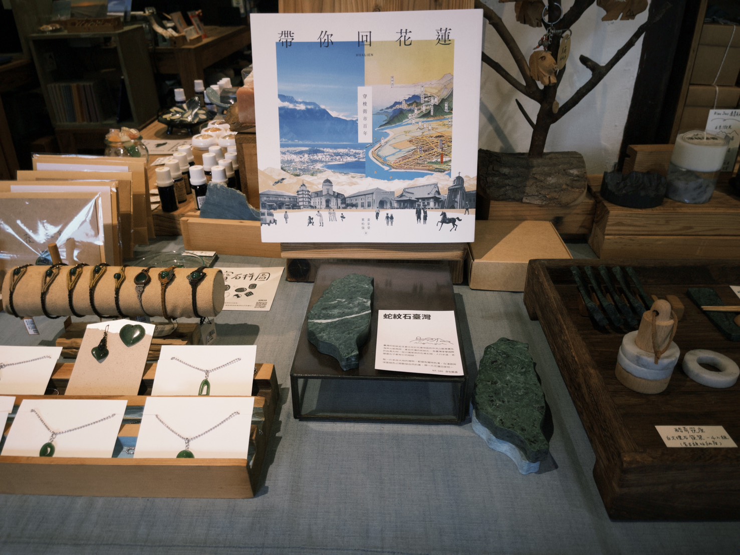 店內擺滿花東選物:茶葉、陶杯、手感布品與在地工藝,每樣都帶著溫度與故事。推門而入的那刻,你會感覺自己像走進會呼吸的空間,木頭香氣、書頁摩擦聲,構成了一首屬於花蓮的午後樂章。
